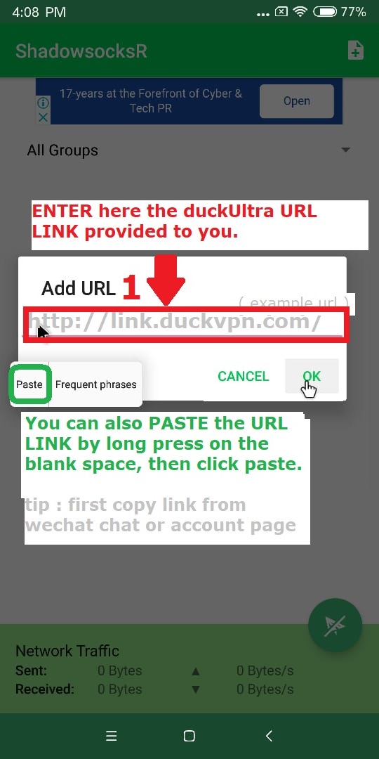 You need to DOWNLOAD then INSTALL DuckVPN ShadowSocksR App